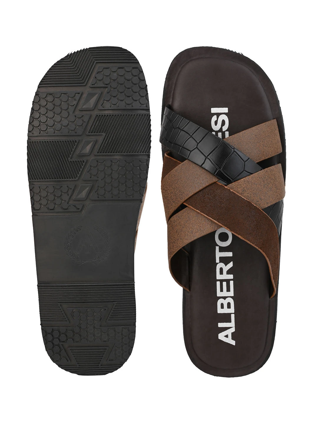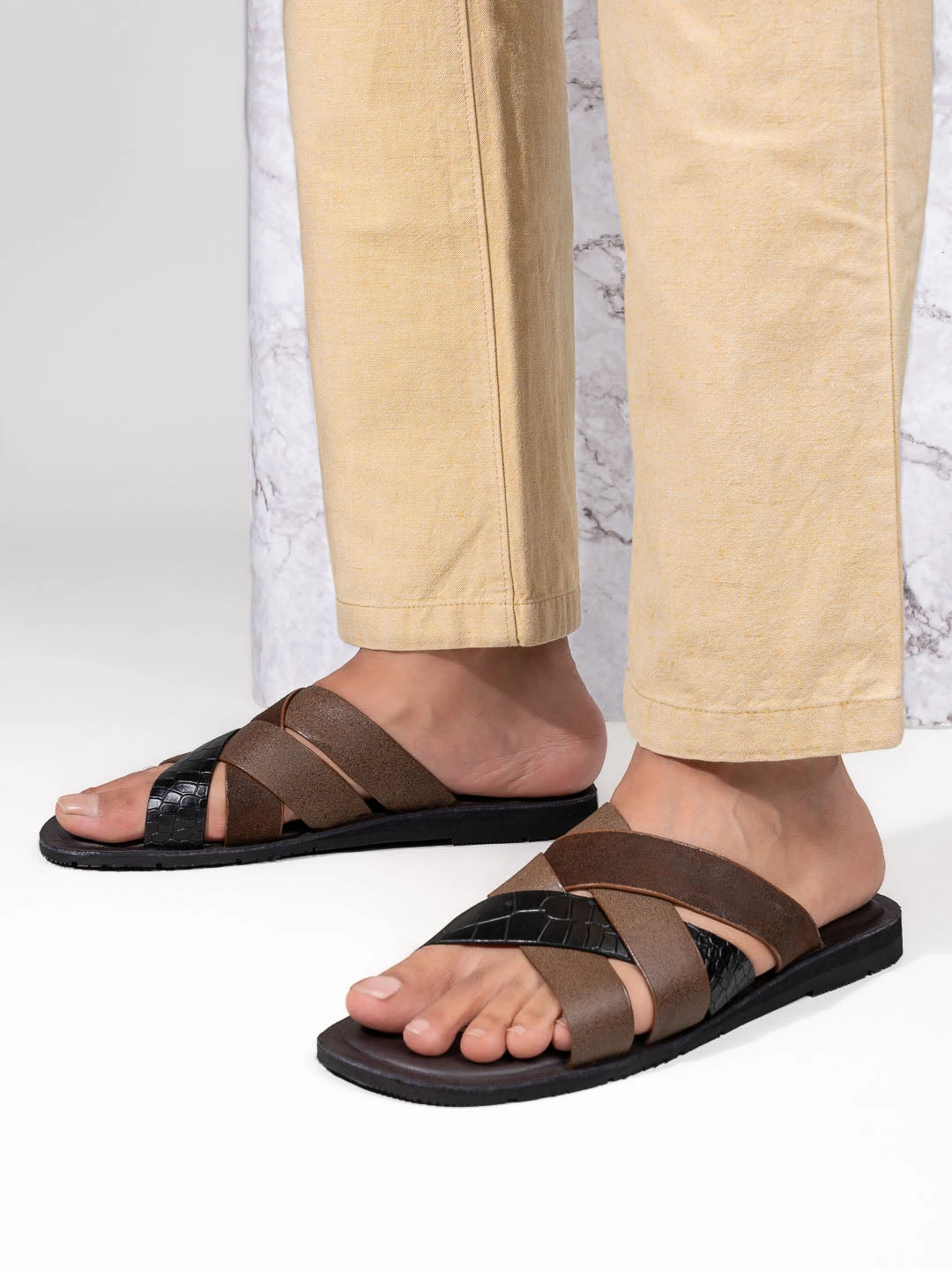 Crafted with genuine leather uppers in a stylish textured and suede combo, these slippers offer premium looks and lasting durability. Built with TPR sole using the latest tech and EVA-supported footbeds for all-day comfort. Perfect for daily wear, parties, or any occasion – where style meets ease.