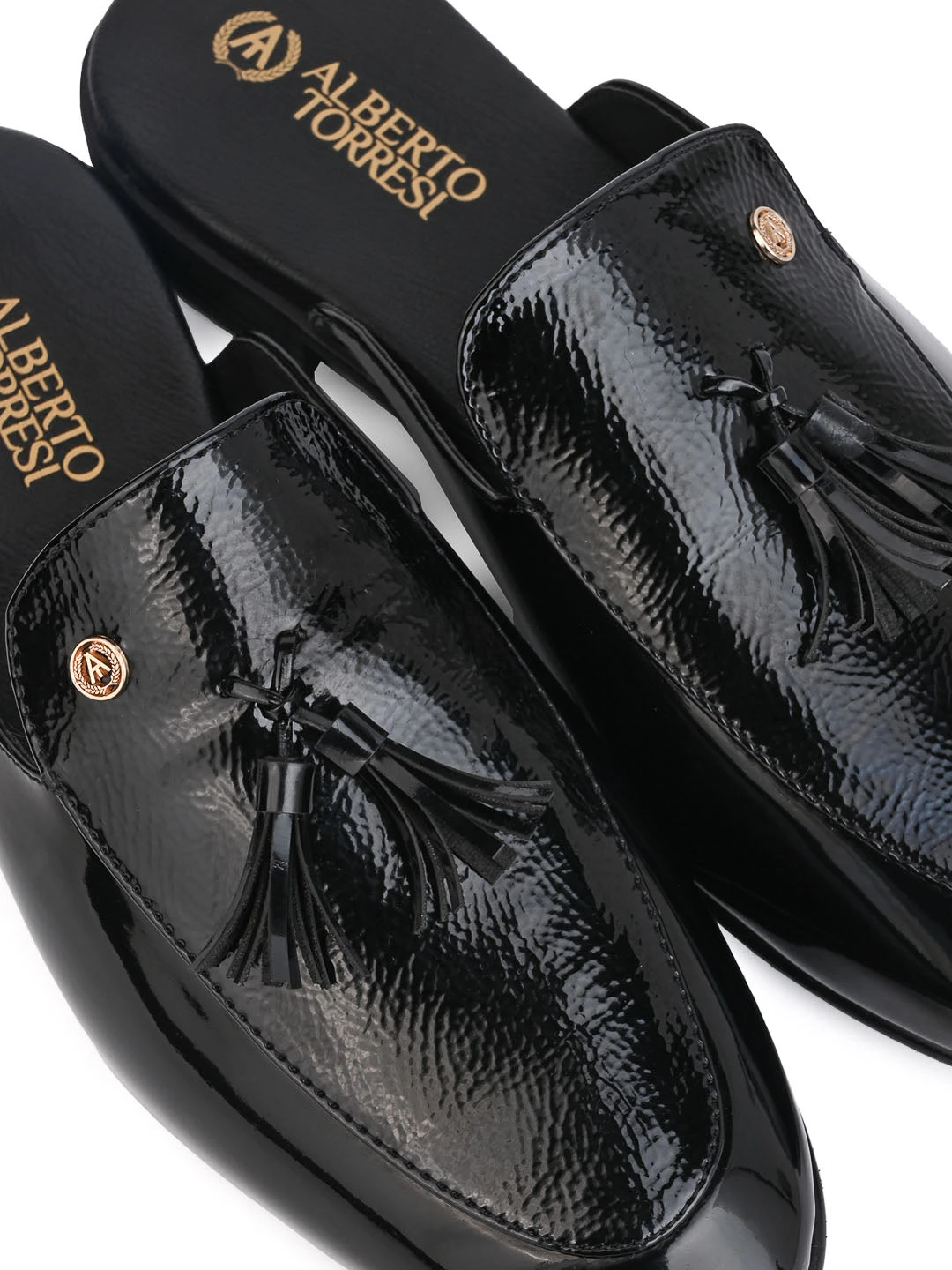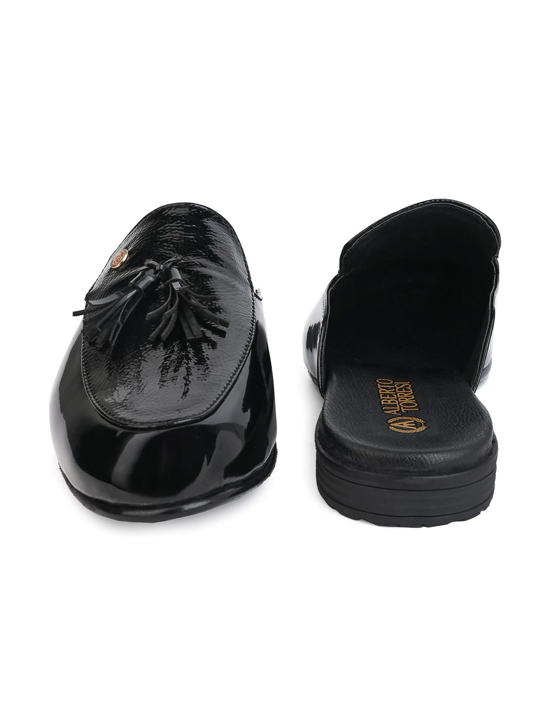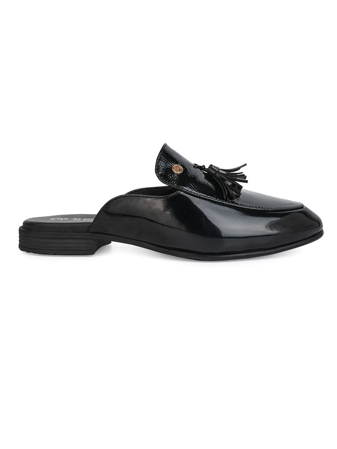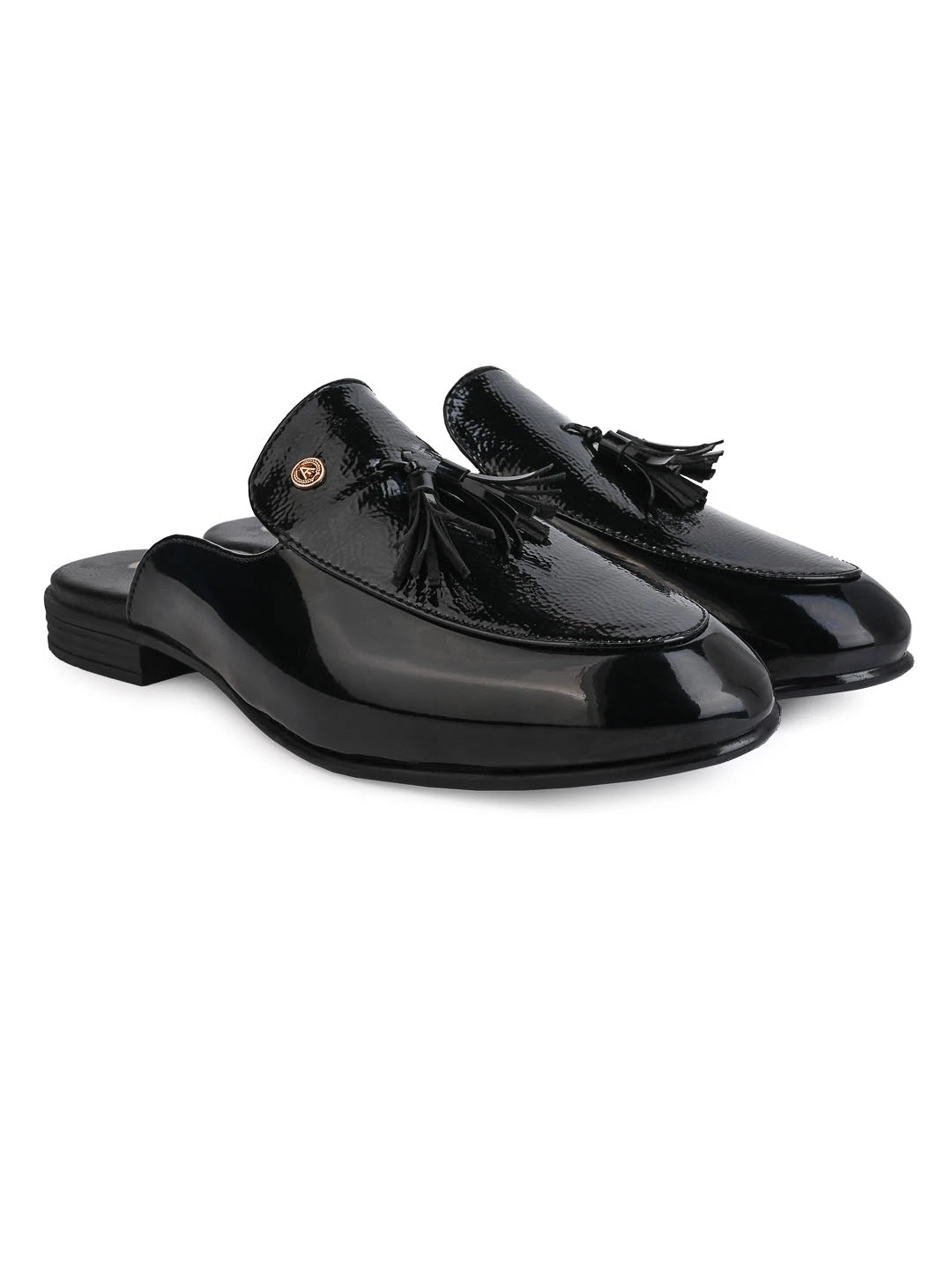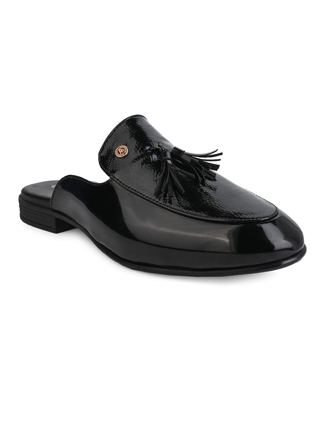 These Black mules with an intricate design and a sharp finish is a go-to option for all your casual and formal needs.