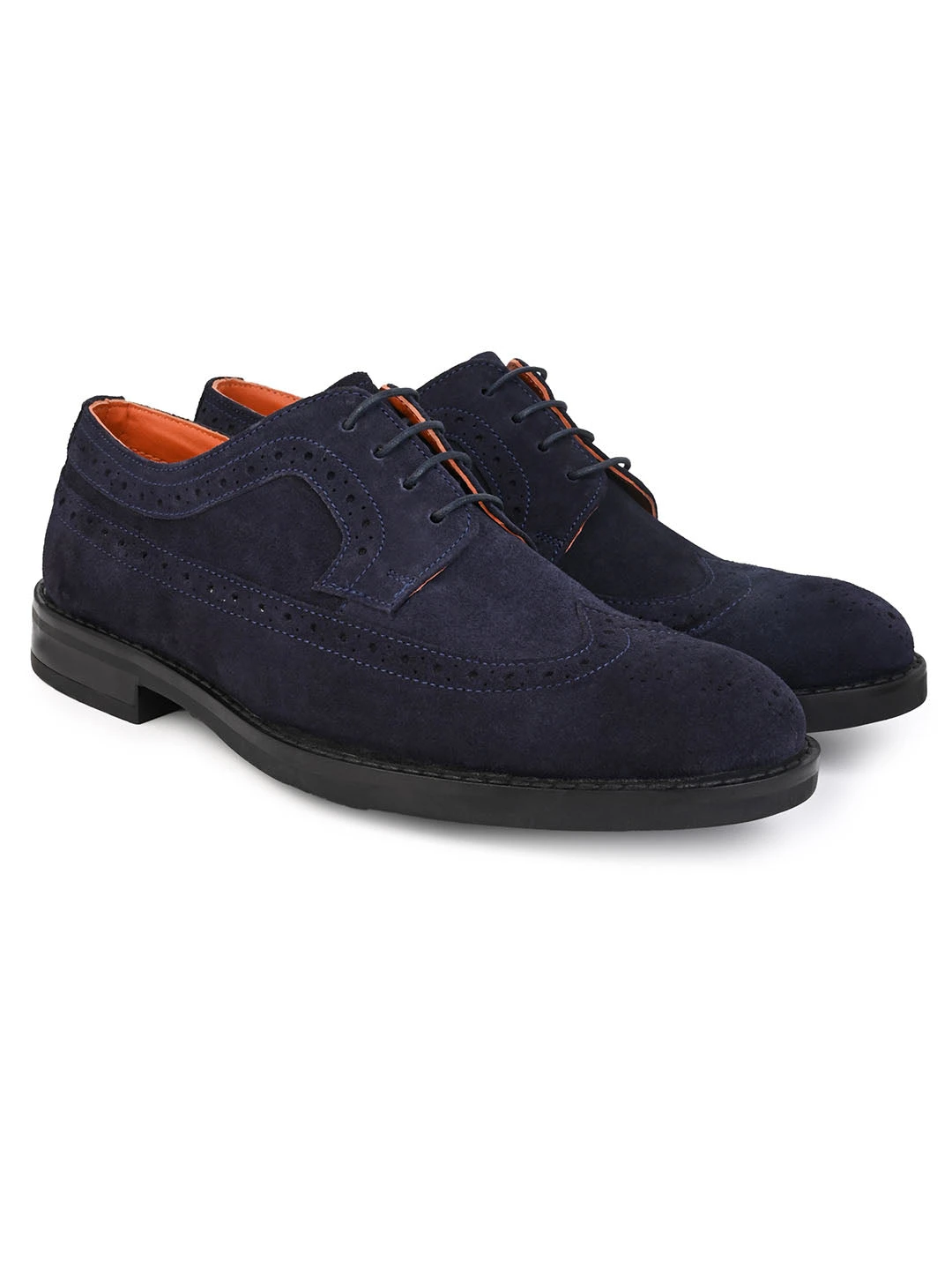 These luxurious Alberto Torresi derby shoes are crafted from rich blue genuine suede, featuring classic wingtip brogue detailing. The vibrant orange leather lining adds a modern pop of contrast. A perfect blend of formal style and contemporary flair, they’re ideal for dressing up any smart-casual