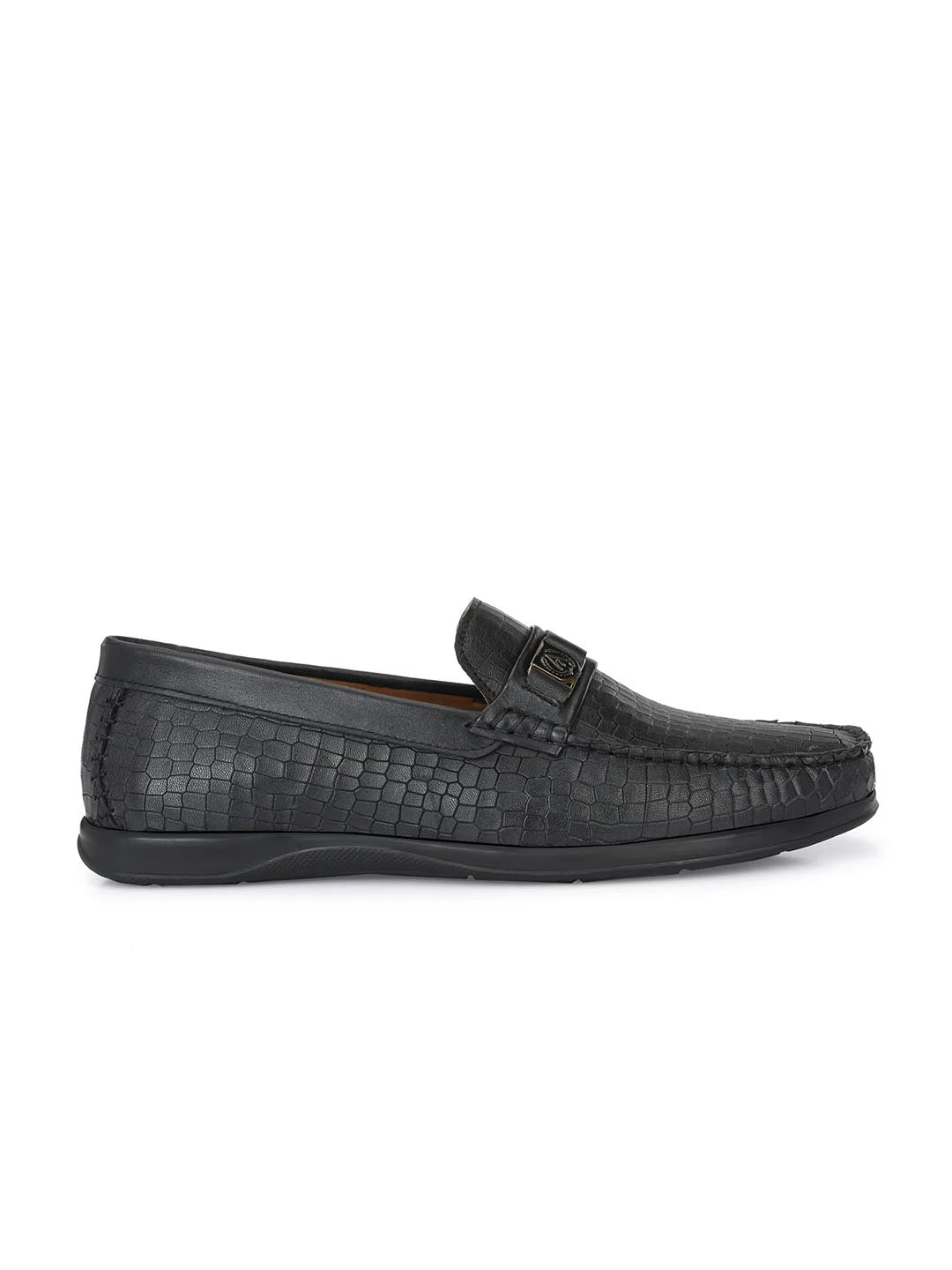 Alberto Torresi Genuine Leather Black Textured Loafers For Men