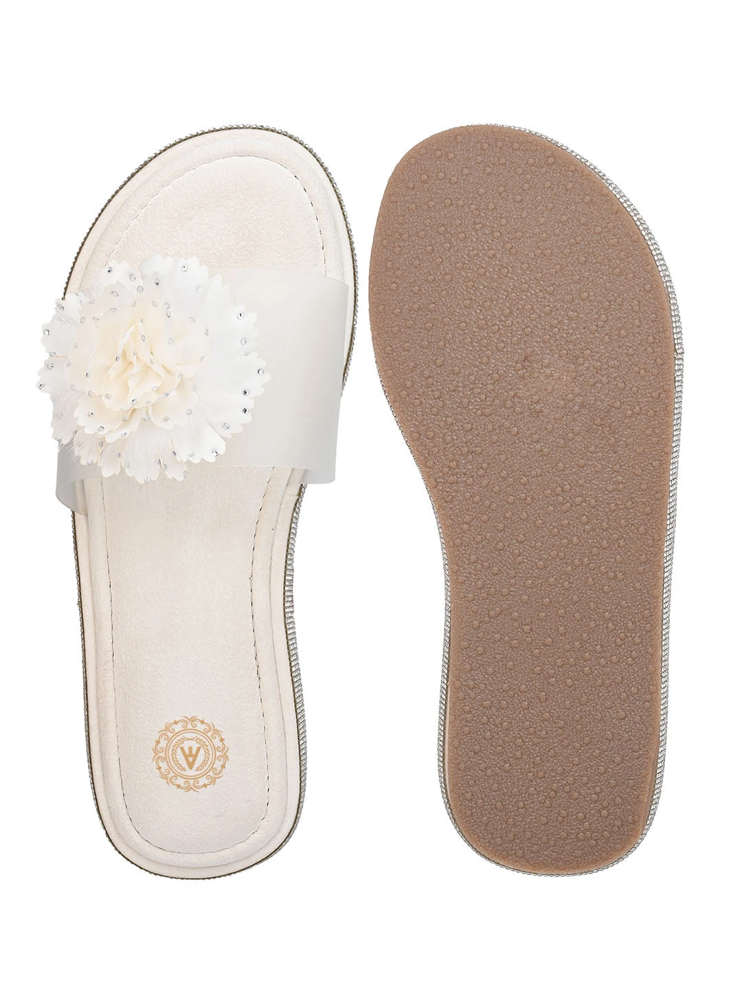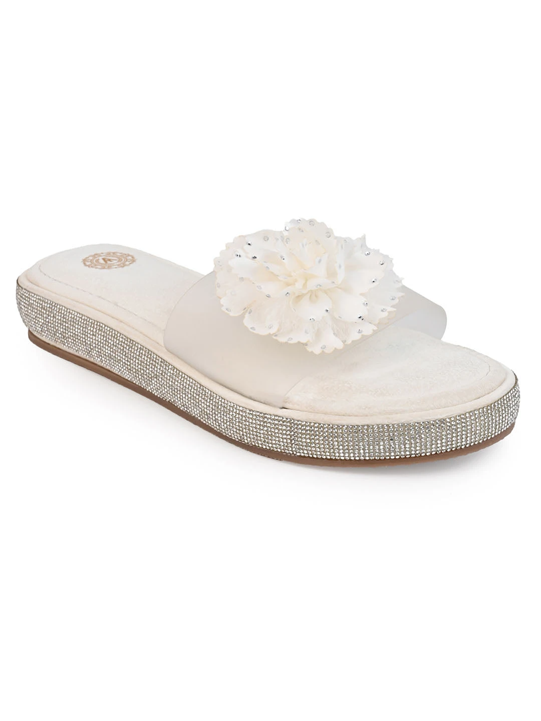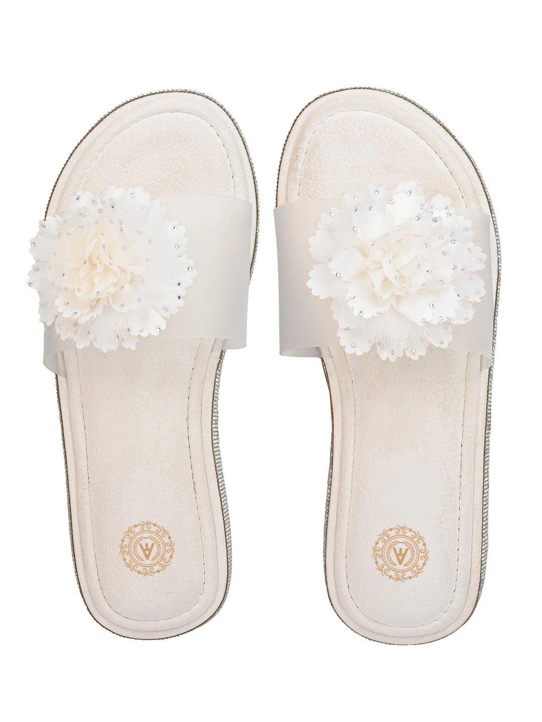 Step into effortless elegance with Alberto Torresi’s white floral slide sandals, designed to add charm and sophistication to your wardrobe. The highlight of this pair is the beautiful 3D flower embellishment, delicately accented with crystal studs for a sparkling finish.